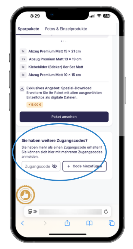 - Einkaufen mit mehreren Zugangscodes aus dem gleichen Fotoauftrag