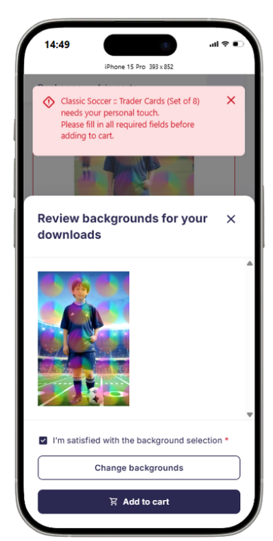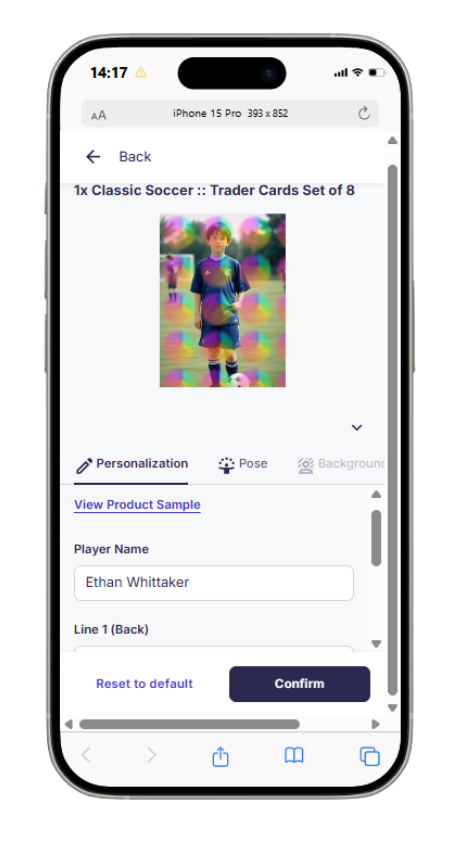 In addition to selecting their pose and adjusting the crop and background (if applicable), customers will also be prompted to enter their custom text.