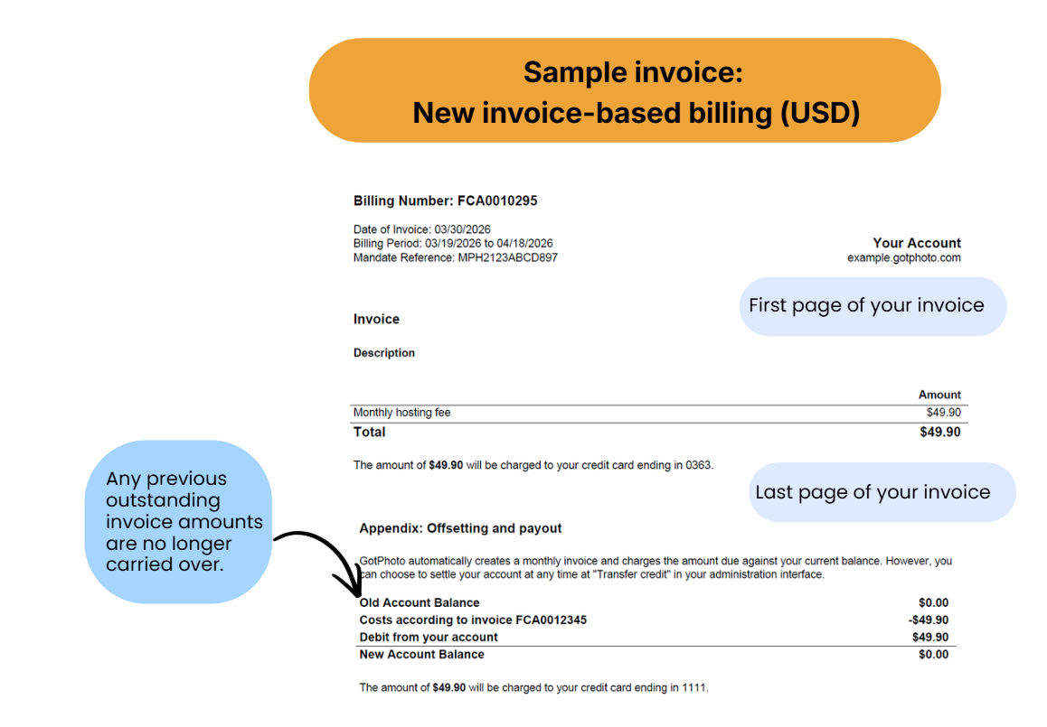 - The GotPhoto Balance is not visible on your dashboard → Invoice-based billing
