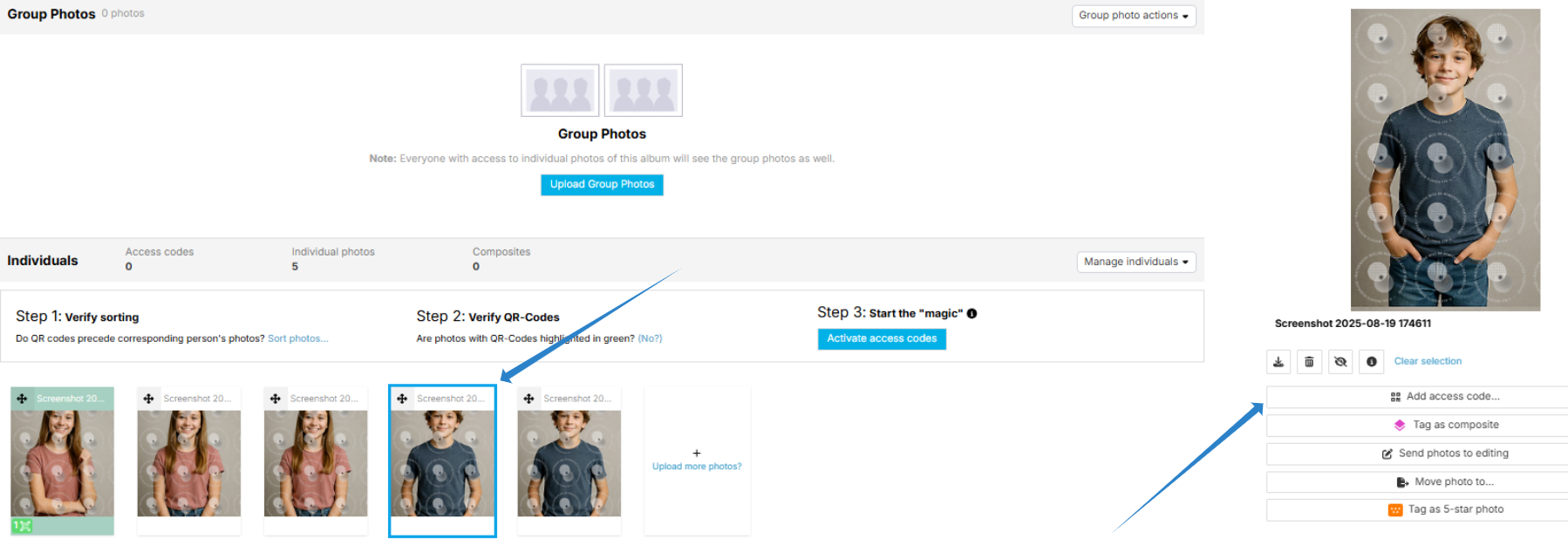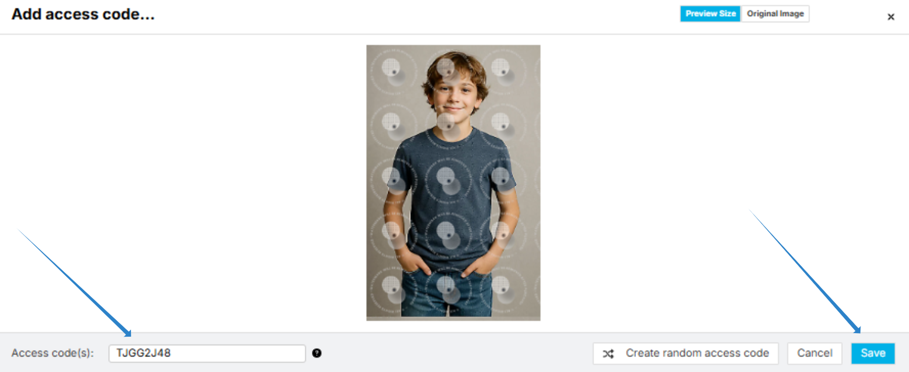 - Click the subject’s photo, then underneath the bigger preview, click Add access code.
